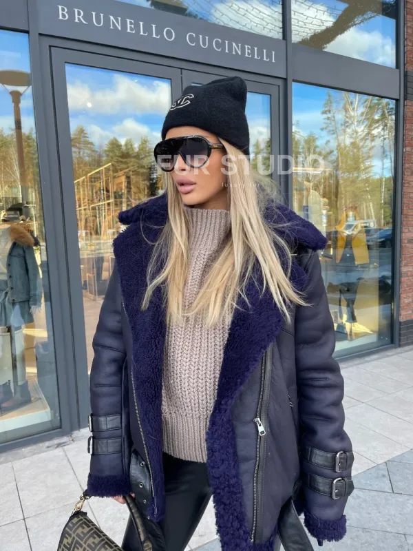 Авиатор из натуральной овчины в синем цвете – выбор свободных девушек, которые любят быть в тренде. Модель – хит сезона этой зимы. В таком образе вы будете выглядеть стильно и дерзко. Кожаные ремни и застежки в виде аксессуаров подчеркивают оригинальность изделия. Необычный оттенок выгодно выделит цвет волос и глаз владелицы.