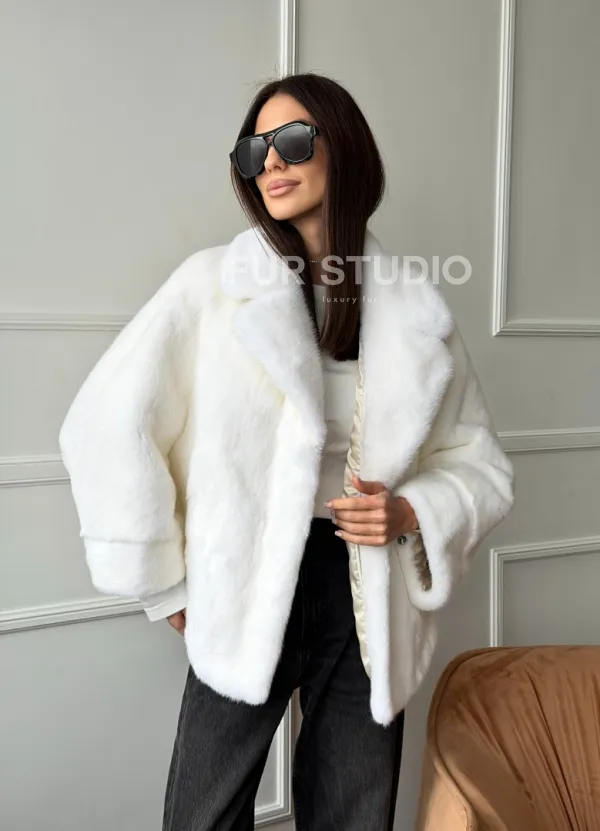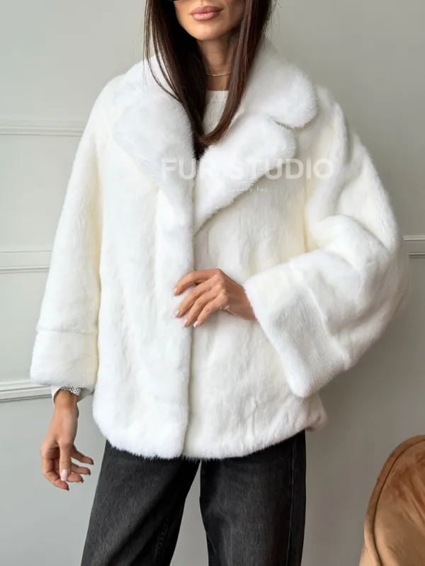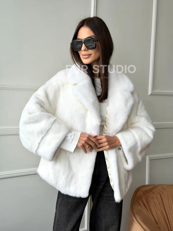 Мех данной шубы аукционная норка, цвет белый. Предлагается в размерах от 42 до 52. Длина модели 60-65 см, что выгодно подчеркивает фигуру девушек. Эта модель идеально подойдет для девушек и женщин, предпочитающих роскошные натуральные меха.