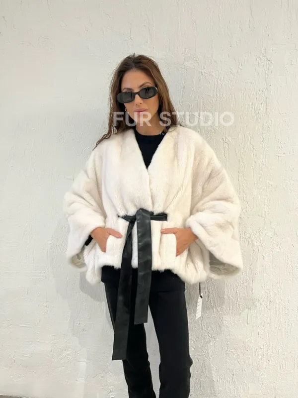 Мех данной шубы аукционная норка , цвет белый. Предлагается в размерах от 38 до 58 (oversize). Длина модели 50-55 см, что выгодно подчеркивает фигуру девушек. Эта модель идеально подойдет для девушек и женщин, предпочитающих роскошные натуральные меха.