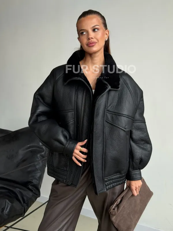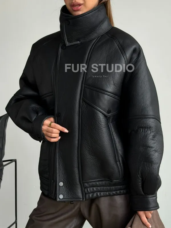 Черная натуральная дубленка из овчины 102599