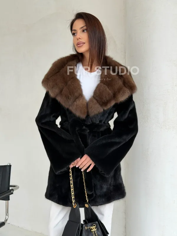 Мех данной шубы аукционная норка, цвет черный. Предлагается в размерах от 42 до 52. Длина модели 80-85 см, что выгодно подчеркивает фигуру девушек. Эта модель идеально подойдет для девушек и женщин, предпочитающих роскошные натуральные меха.