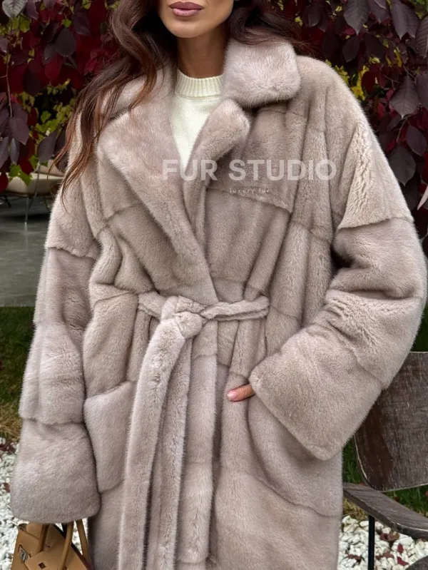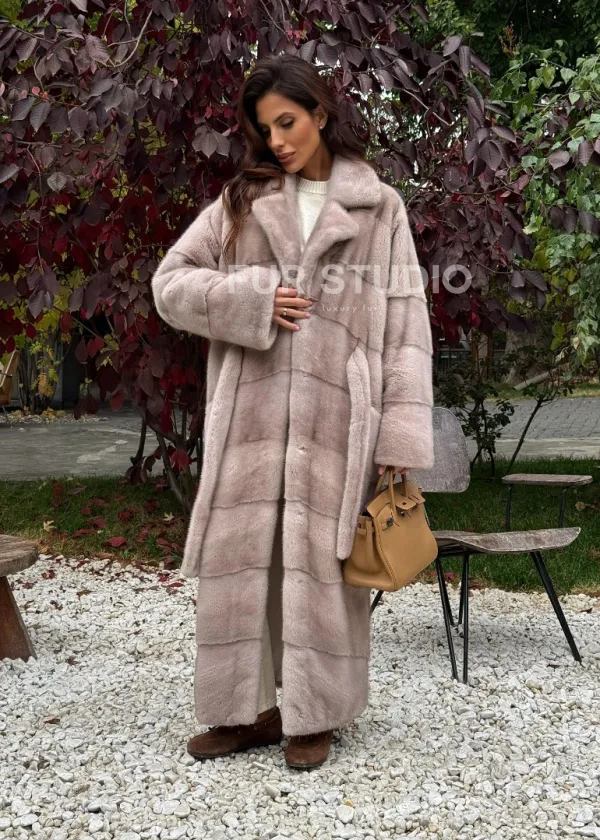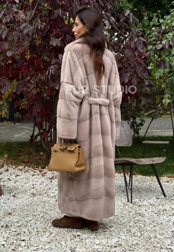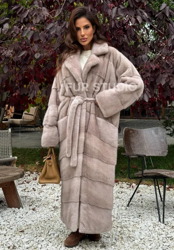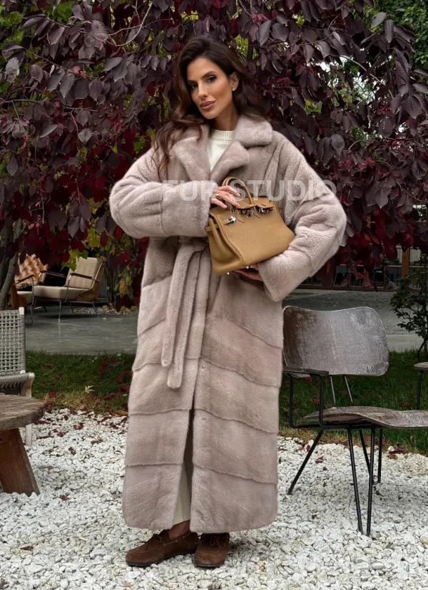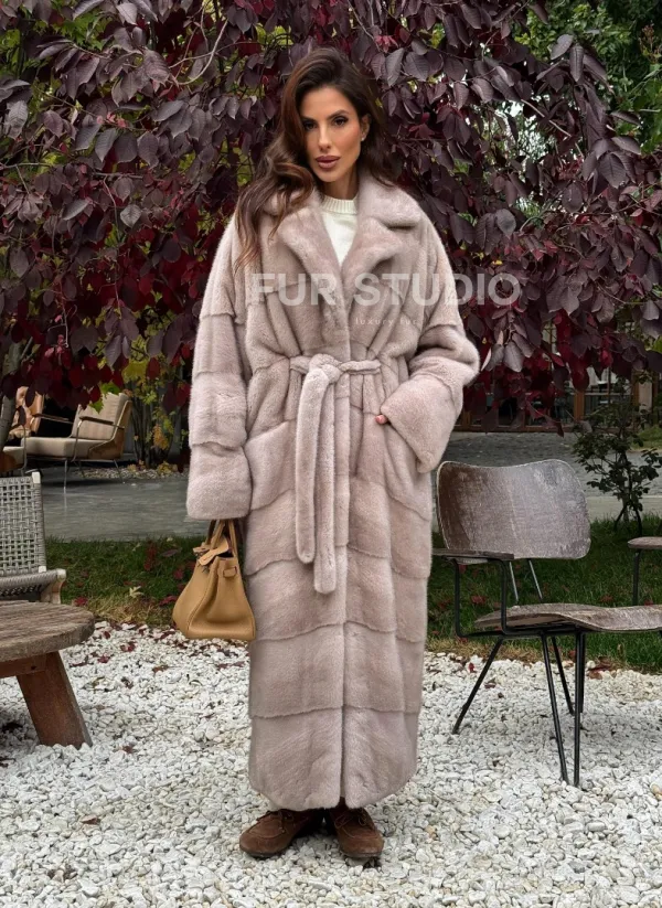 Длинная норковая шуба с поясом 102344