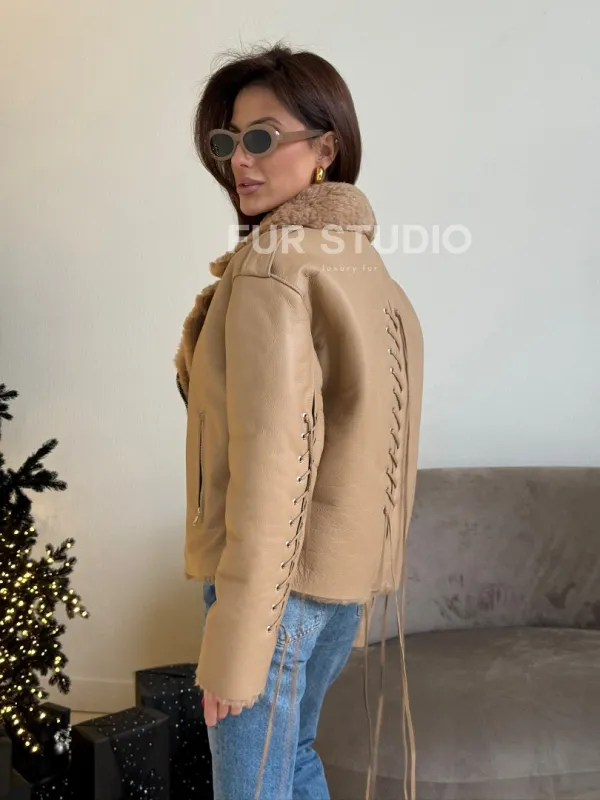 Дубленка - куртка со шнуровкой на спине 100843