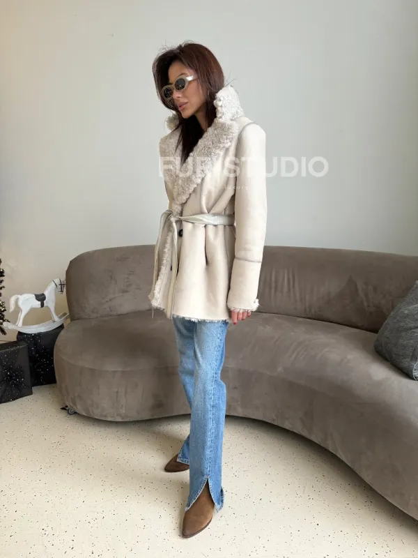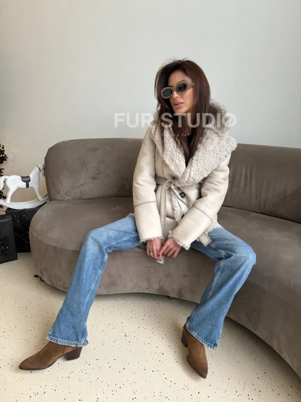 Двусторонняя дублёнка - шуба, мех тиградо английский воротник 100845
