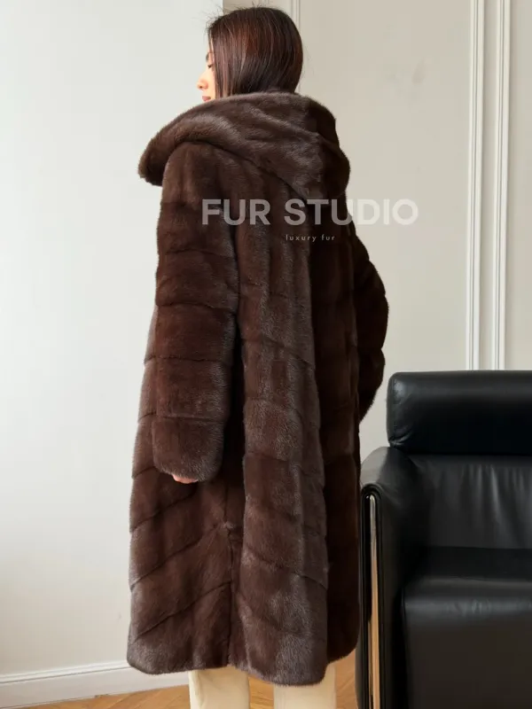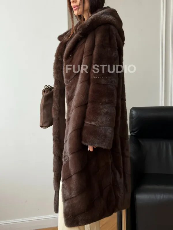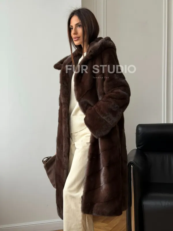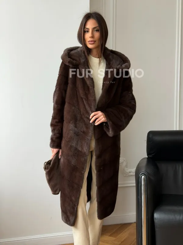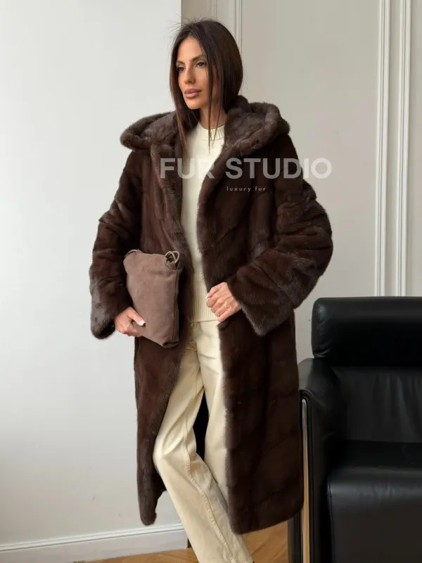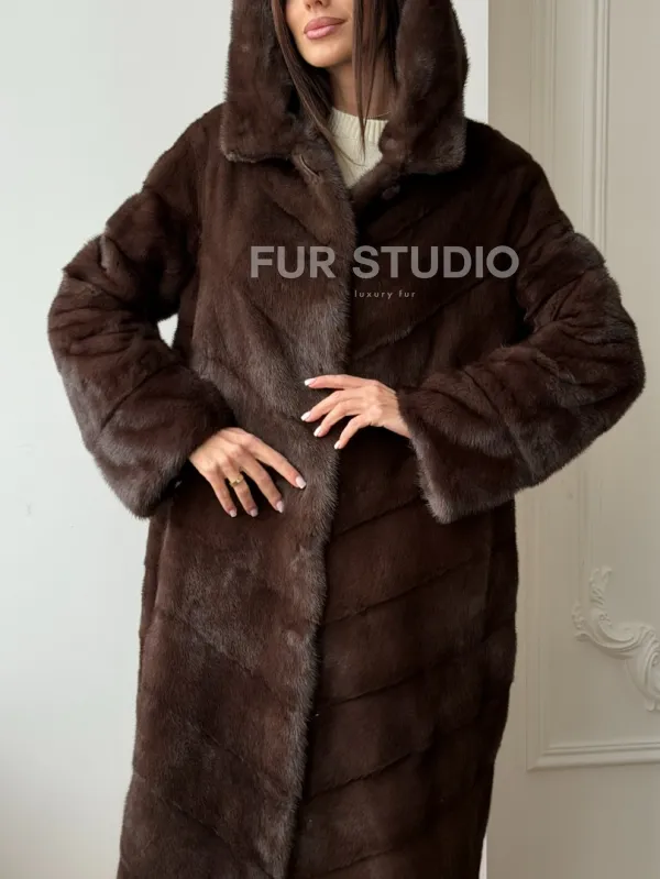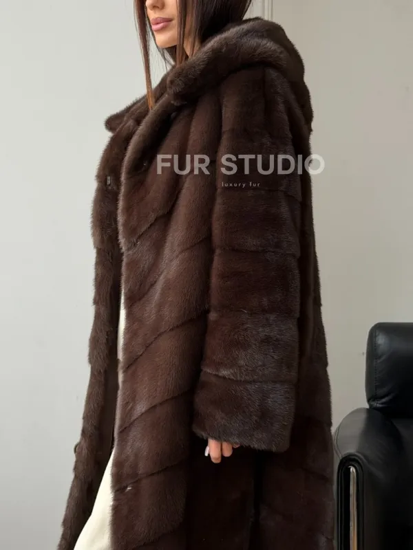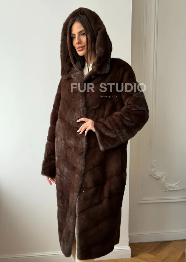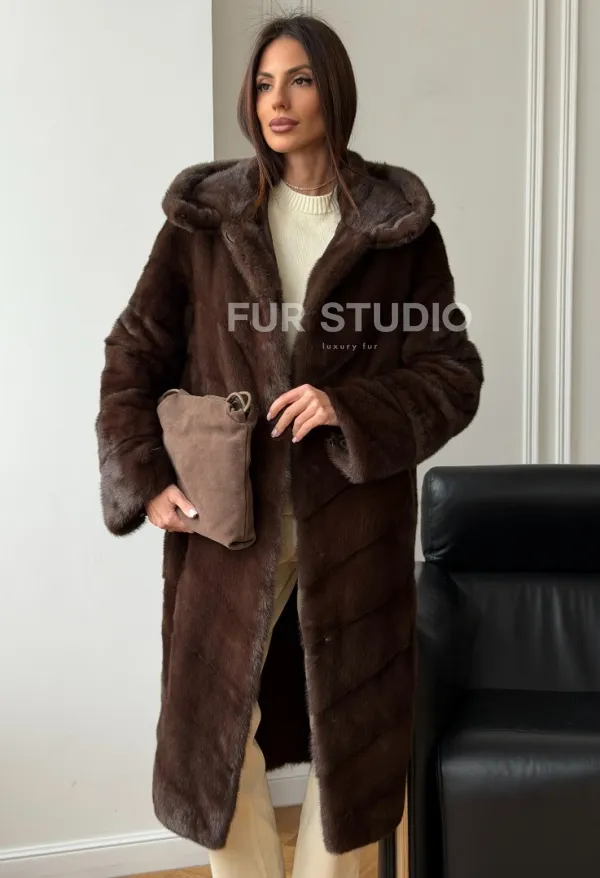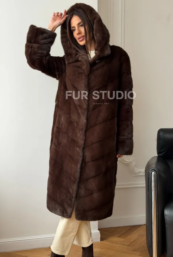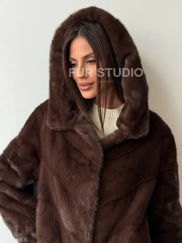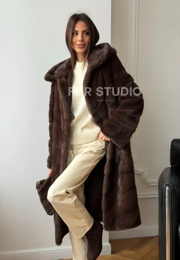Коричневая норковая шуба с капюшоном доступна для покупки в нашем шоуруме Furs Studio в . У нас так же есть доставка во все города России. Добавьте немного роскоши в свой гардероб с этой шубой, которая будет служить вам многие годы.