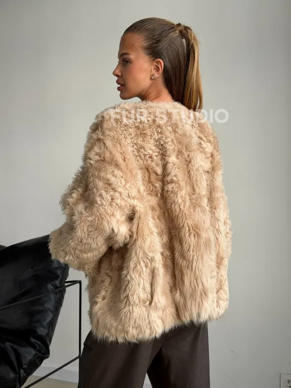 Короткая куртка из овчины. Модель предлагается в размерах от 42 до 46. Оптимальная длина моделей 60-65 см подчеркивает линии вашей фигуры. Эта дубленка станет неотъемлемой частью гардероба для тех, кто предпочитает роскошь и утонченность натуральной кожи.
