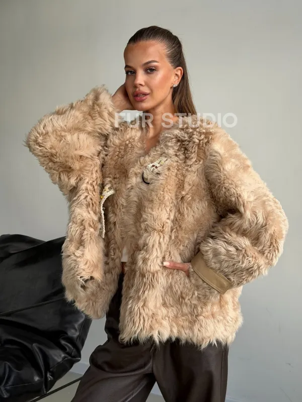 Короткая куртка из овчины доступна для покупки в нашем шоуруме Furs Studio в , а также предлагается удобная доставка во все города России. Обогатите свой гардероб этой дубленкой, которая прослужит вам многие годы, добавив немного роскоши в ваш повседневный образ.
