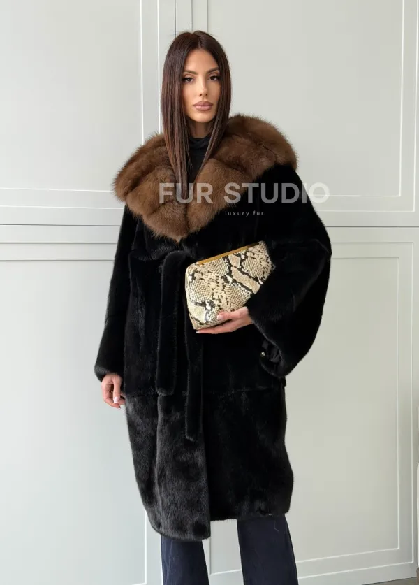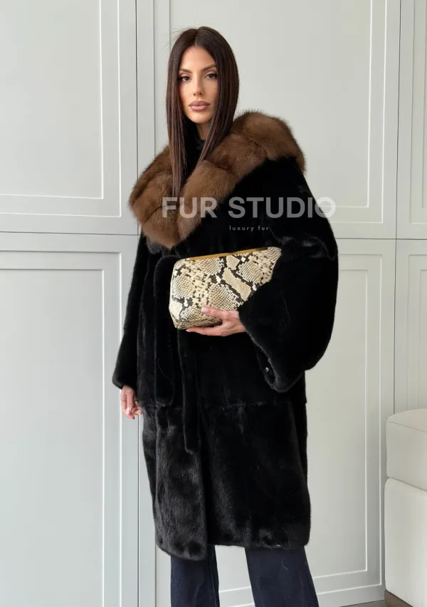 Норковая шуба фасон баллон с капюшоном куница 100518