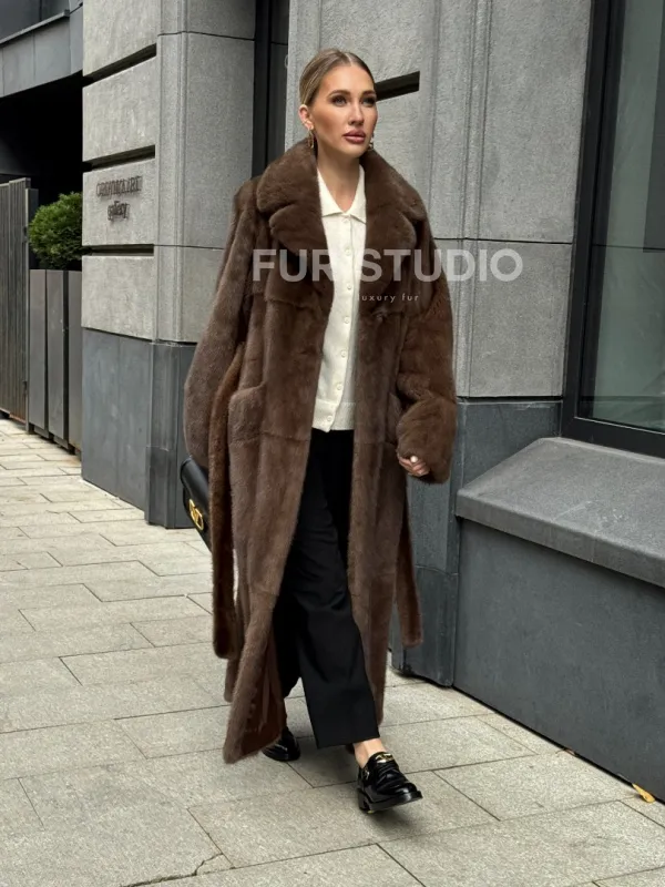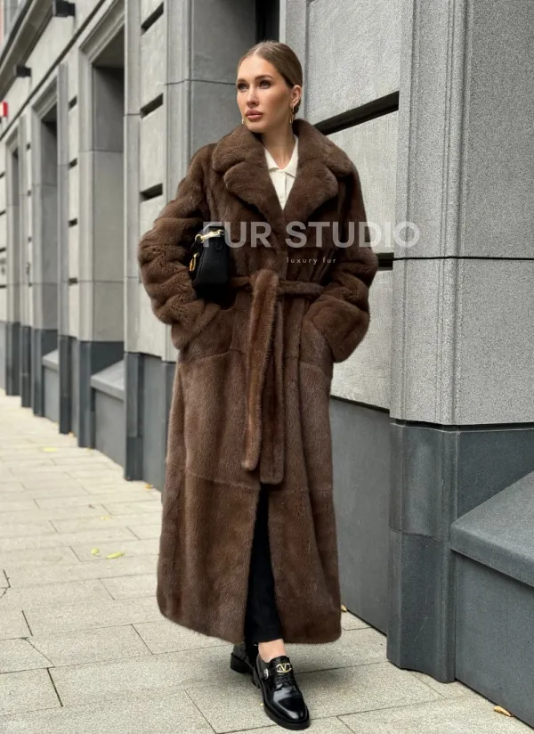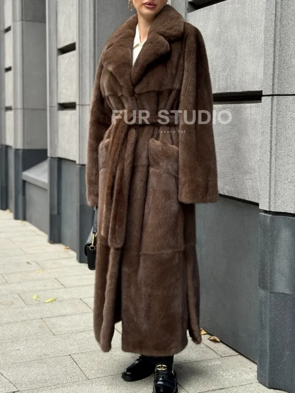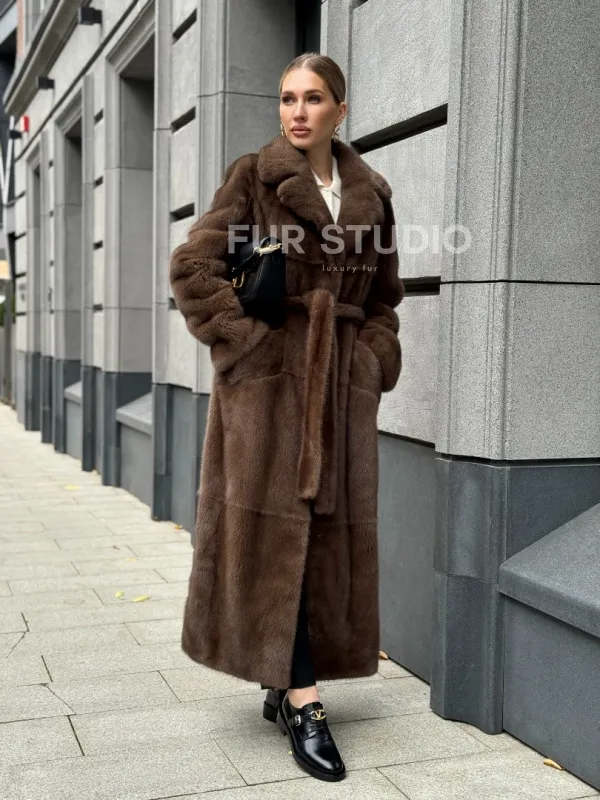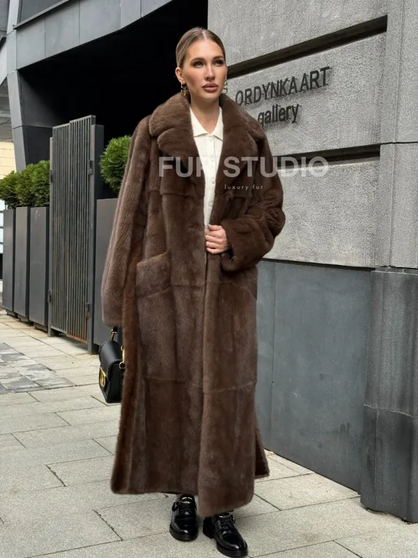 Норковая шуба - цвет соболь 102371