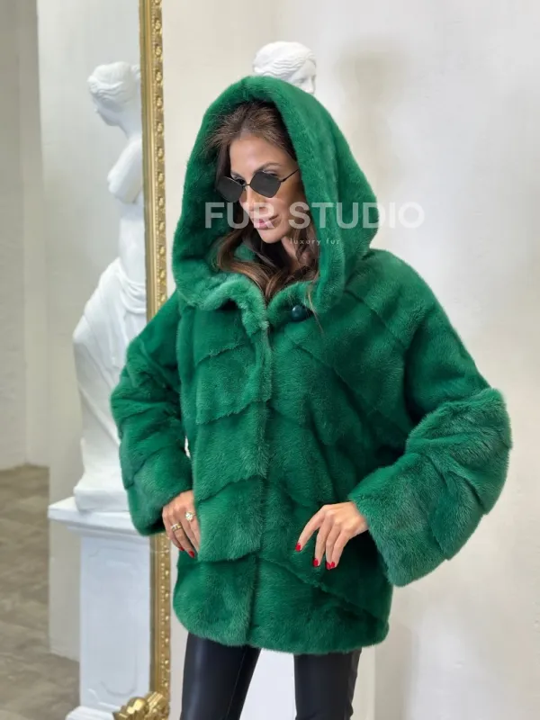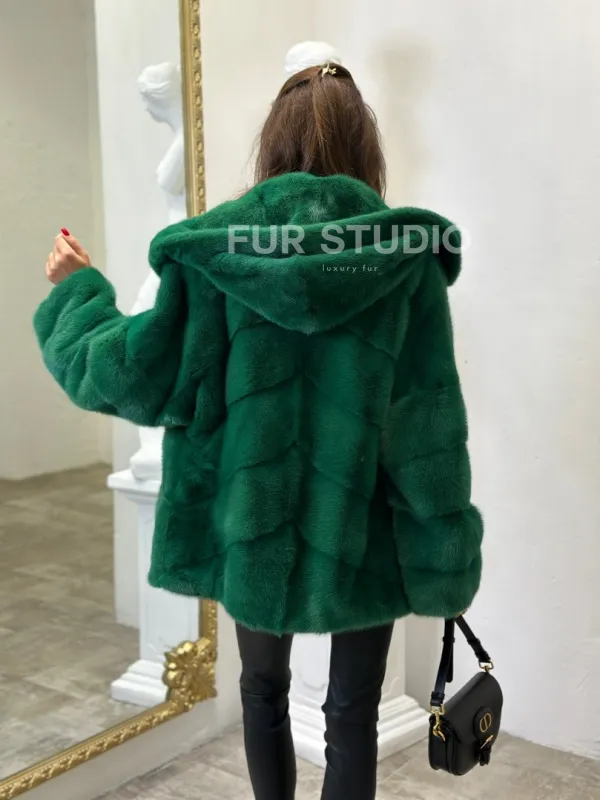 Норковый полушубок с капюшоном - цвет изумруд доступна для покупки в нашем шоуруме Furs Studio в . У нас так же есть доставка во все города России. Добавьте немного роскоши в свой гардероб с этой шубой, которая будет служить вам многие годы.