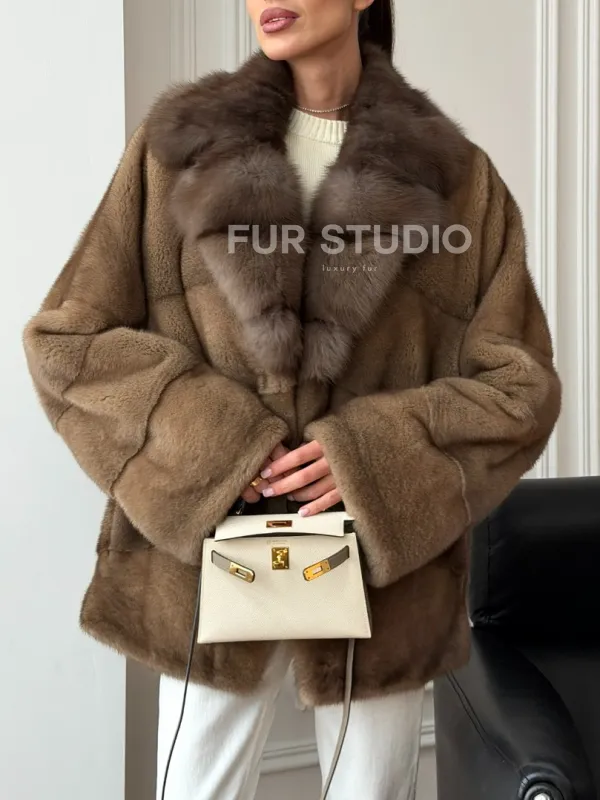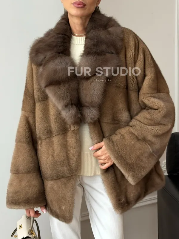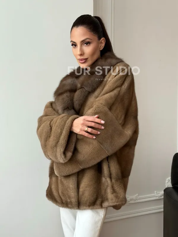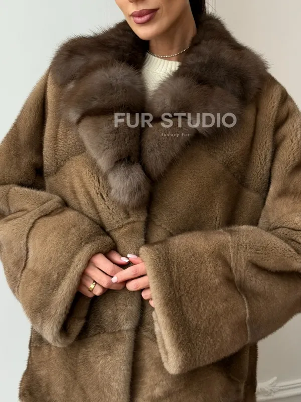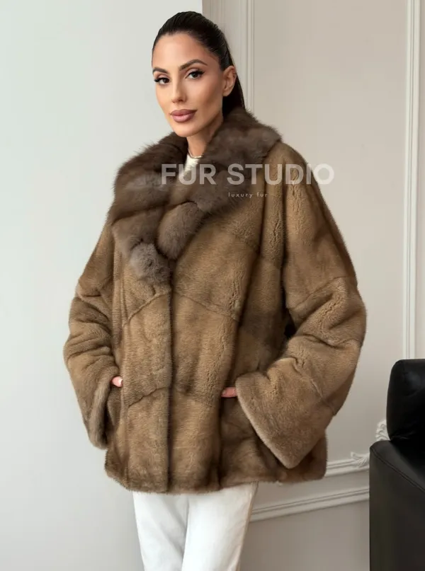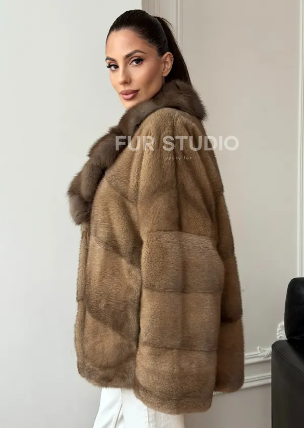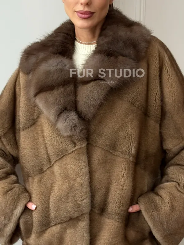 Норковый полушубок - воротник куница 102709