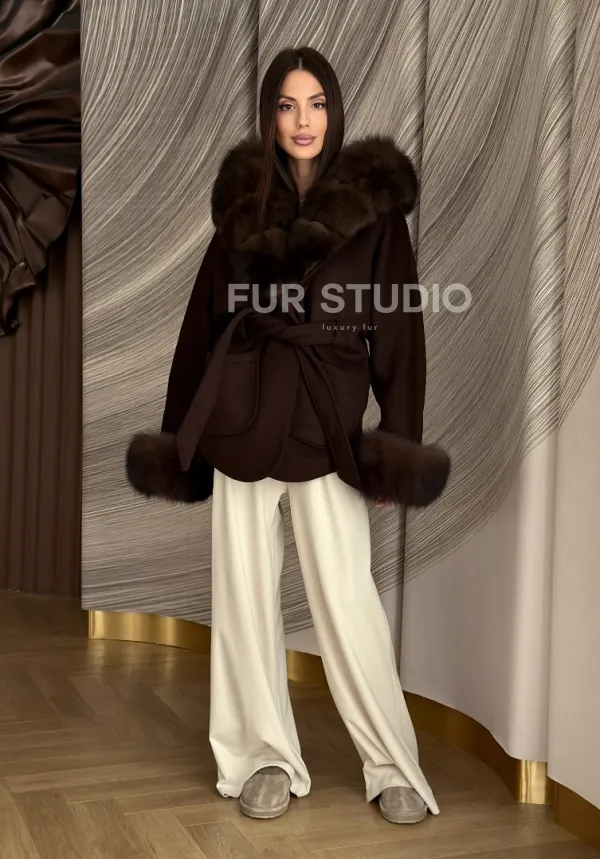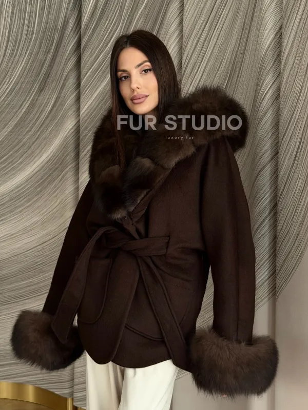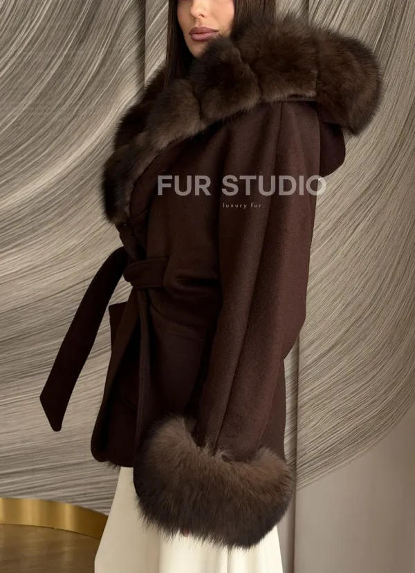 Пальто с мехом песца под соболь 102907