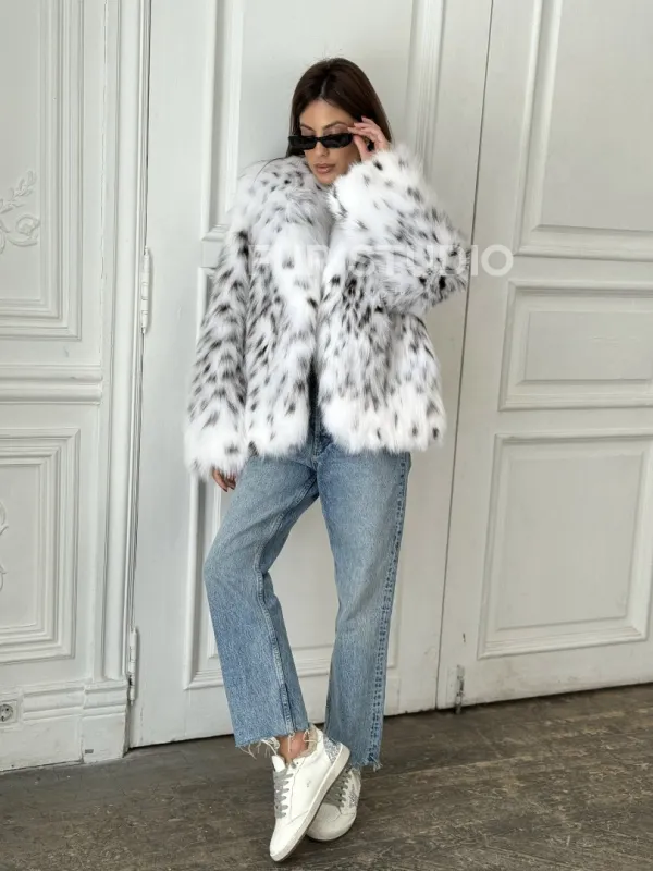 Полушубок из меха аукционной лисы (реплика канадской рыси) 100850