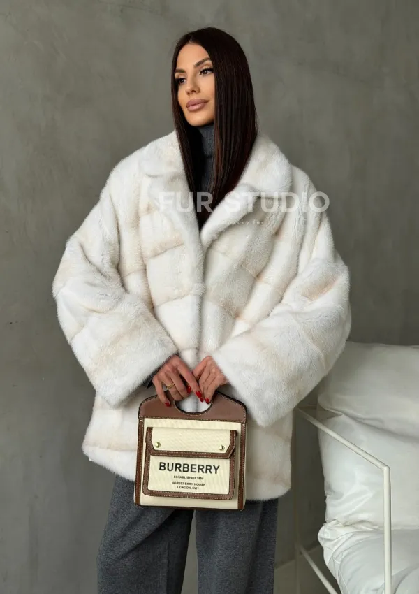 Мех данной шубы аукционная норка, цвет белый. Предлагается в размерах от 42 до 50. Длина модели 70-75 см, что выгодно подчеркивает фигуру девушек. Эта модель идеально подойдет для девушек и женщин, предпочитающих роскошные натуральные меха.