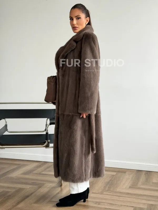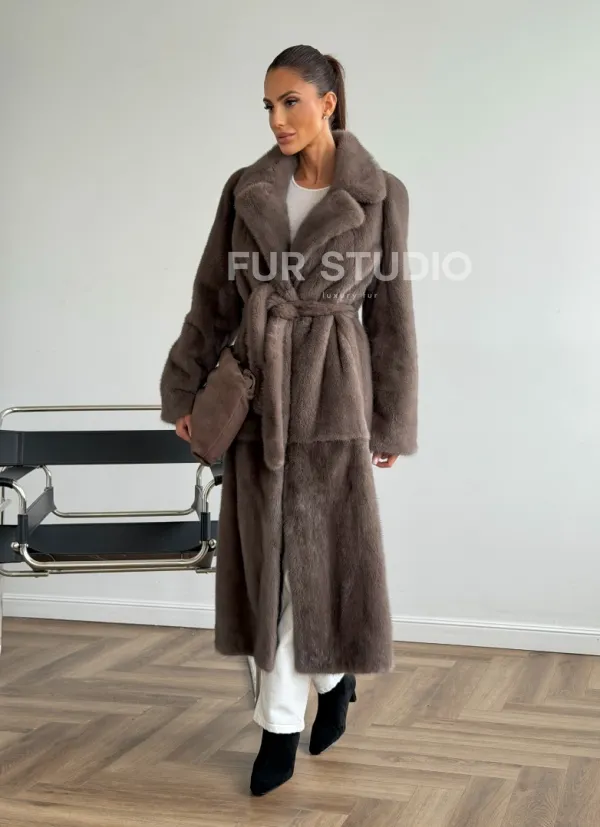 Прямая норковая шуба с поясом 102651