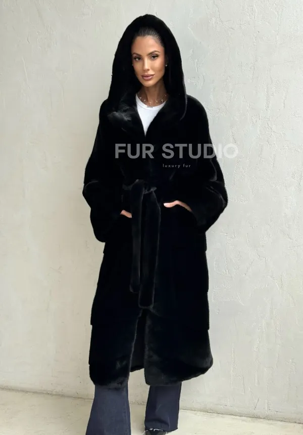 Мех данной шубы норка Blackglama , цвет черный. Предлагается в размерах от 42 до 50. Длина модели 115-120 см, что выгодно подчеркивает фигуру девушек. Эта модель идеально подойдет для девушек и женщин, предпочитающих роскошные натуральные меха.
