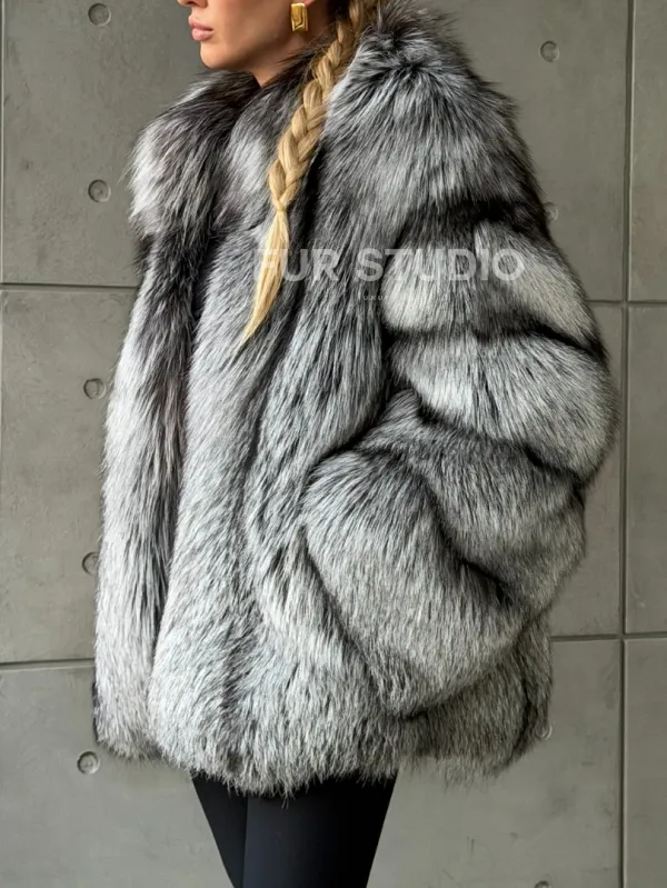 Мех данной шубы лиса, цвет серый. Предлагается в размерах от 42 до 50. Длина модели 70-75 см, что выгодно подчеркивает фигуру девушек. Эта модель идеально подойдет для девушек и женщин, предпочитающих роскошные натуральные меха.