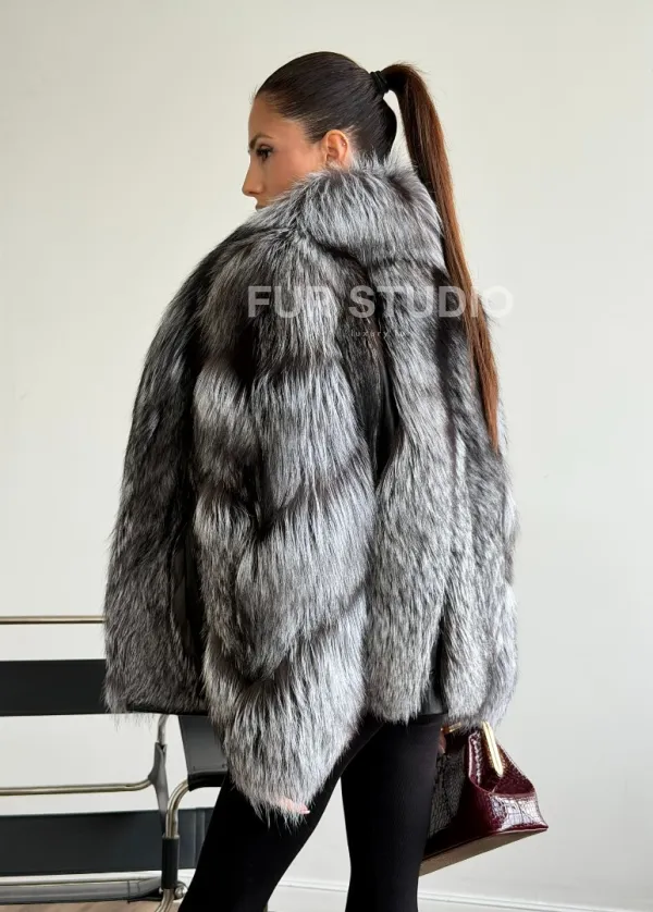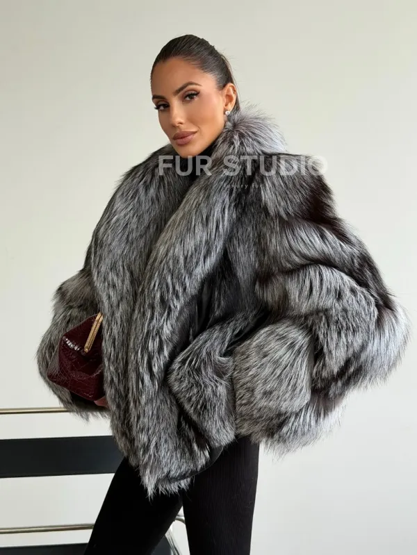 Мех данной шубы лиса, цвет серый. Предлагается в размерах от 42 до 48. Длина модели 55-60 см, что выгодно подчеркивает фигуру девушек. Эта модель идеально подойдет для девушек и женщин, предпочитающих роскошные натуральные меха.