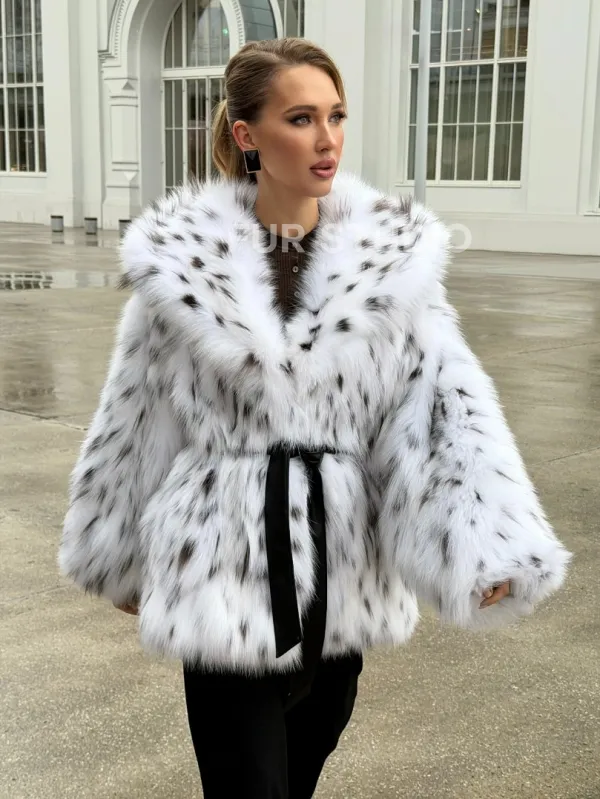 Мех данной шубы лиса, цвет белый. Предлагается в размерах от 38 до 52 oversize. Длина модели 70-75 см , что выгодно подчеркивает фигуру девушек. Эта модель идеально подойдет для девушек и женщин, предпочитающих роскошные натуральные меха.