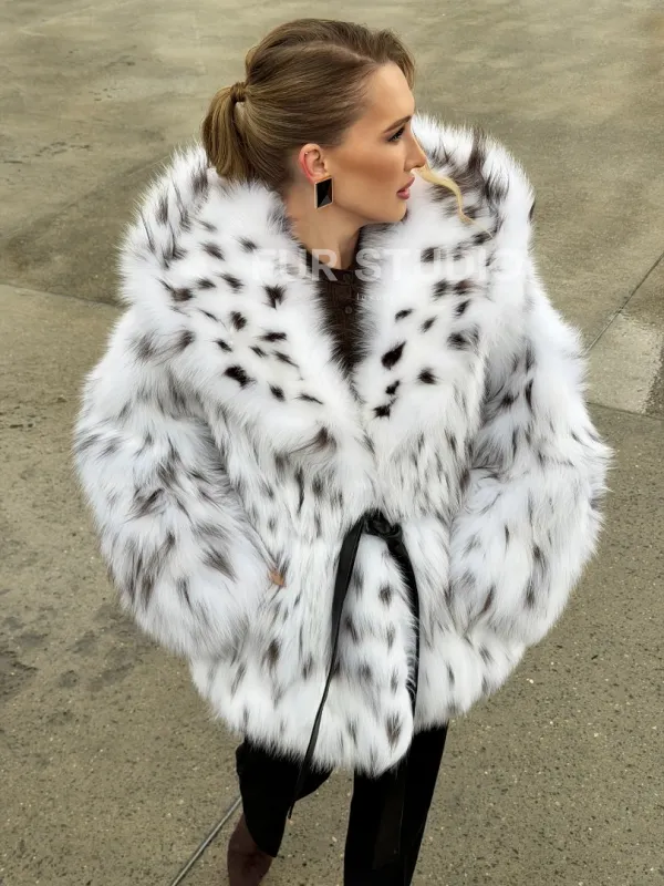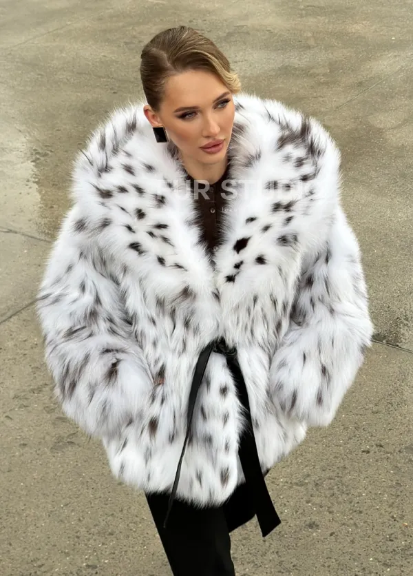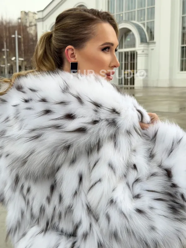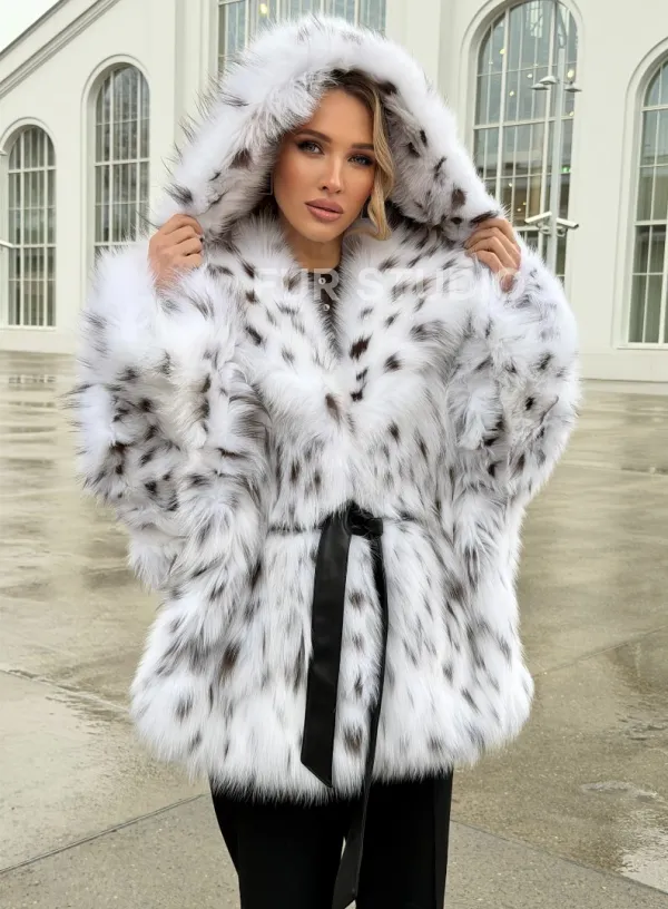Шуба из лисьего меха под рысь с капюшоном 102680