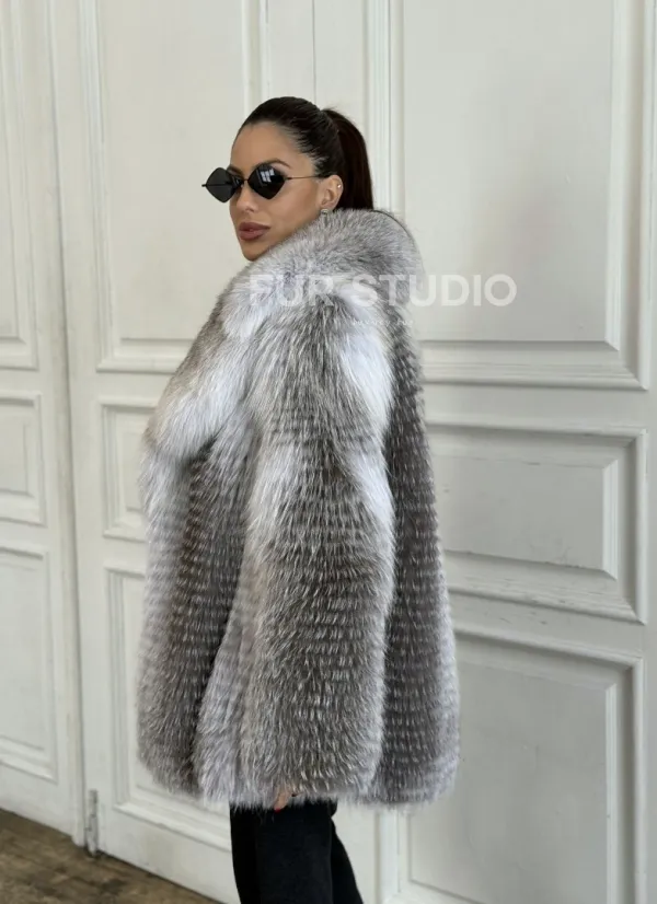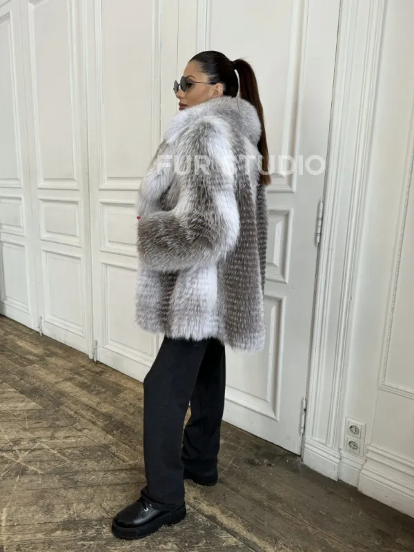Шуба из меха арктической лисы - отличный выбор женщин, которые любят выглядеть стильно в зимнее время года. Мех смотрится шикарно и богато. Необычная расцветка подчеркнет цвет волос и глаз владелицы. В шубе будет комфортно в холодную зиму. Широкие манжеты делают акцент на тонкости кистей.