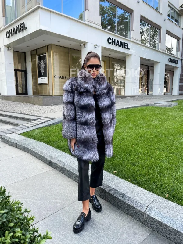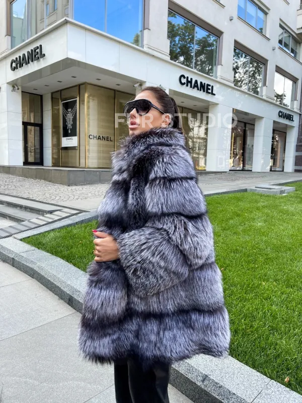 Шуба из меха чернобурой лисы 100286
