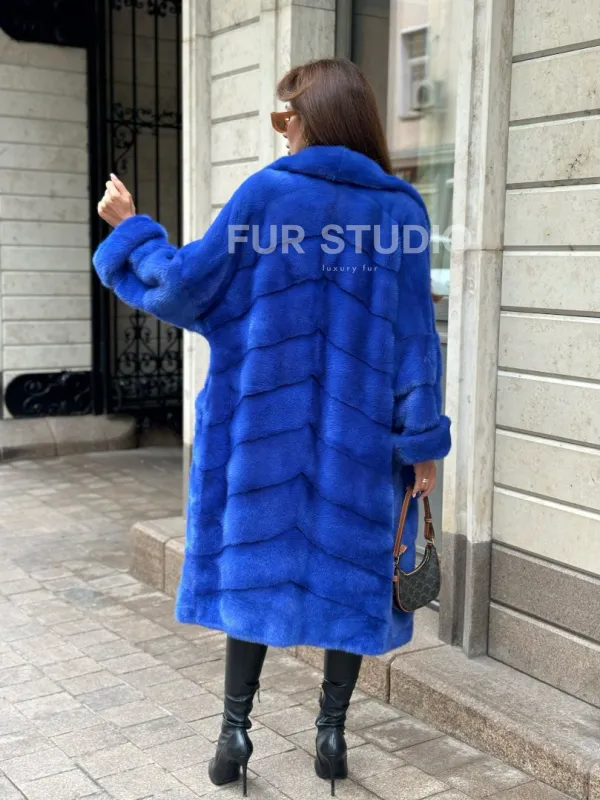Шуба из меха норки - цвет синий 100506