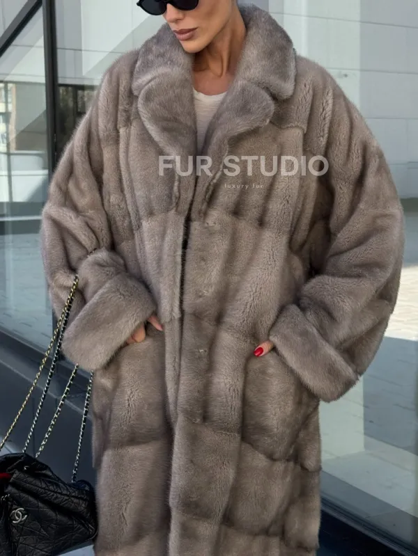 Шуба из меха норки в стиле «Oversize» - цвет сильвер 100990