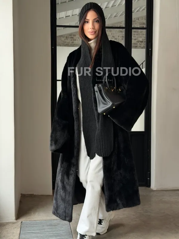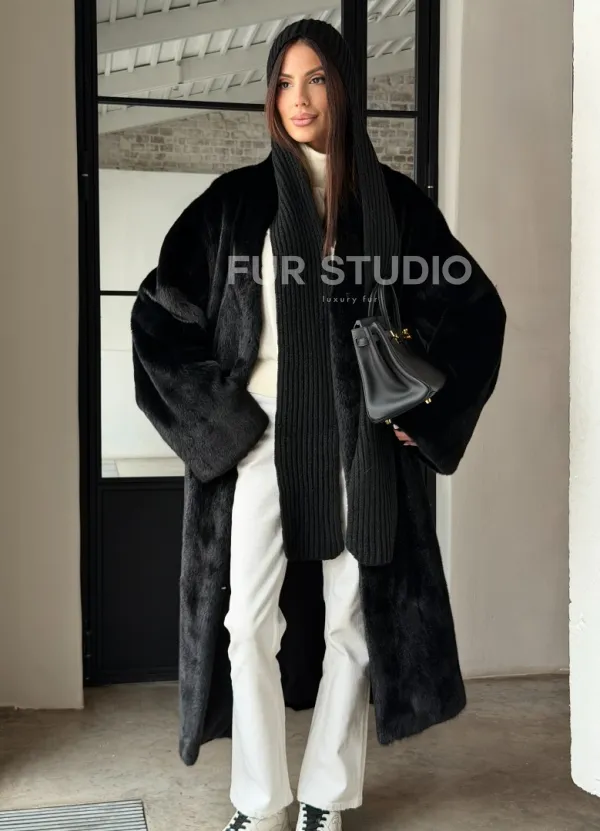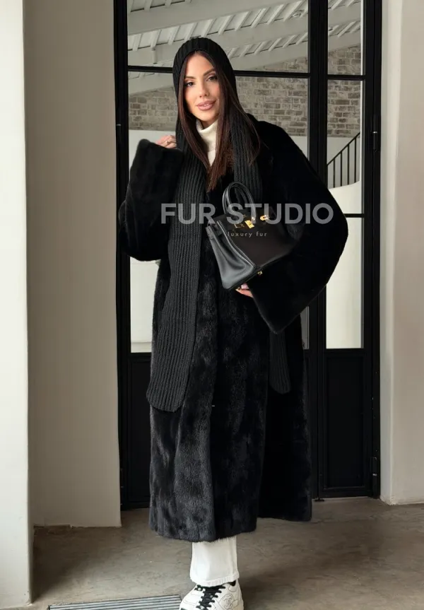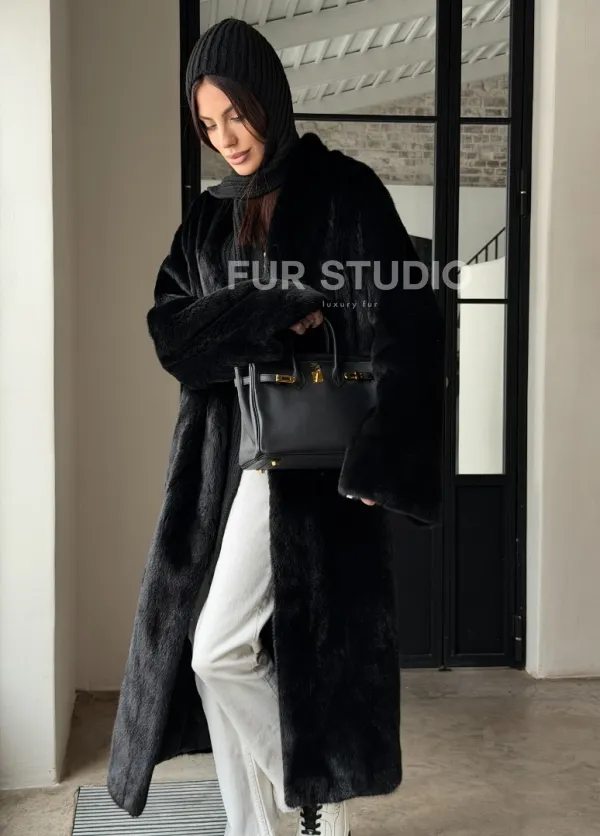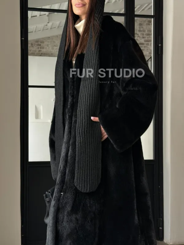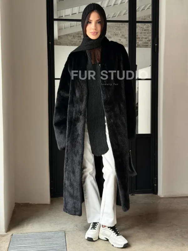 Мех данной шубы аукционная норка , цвет черный . Предлагается в размерах от 42 до 52. Длина модели 115-120 см, что выгодно подчеркивает фигуру девушек. Эта модель идеально подойдет для девушек и женщин, предпочитающих роскошные натуральные меха.