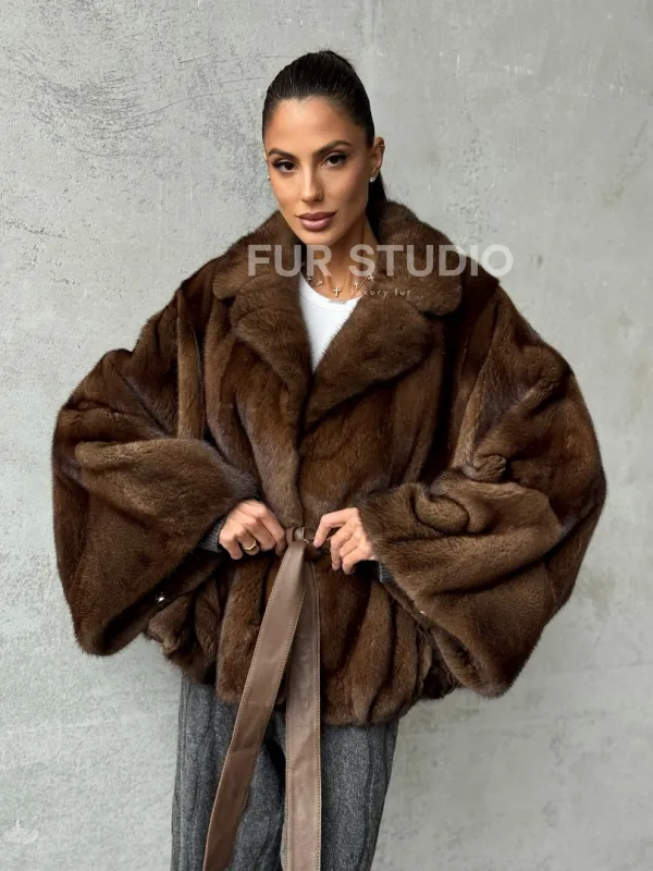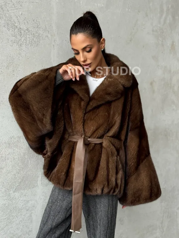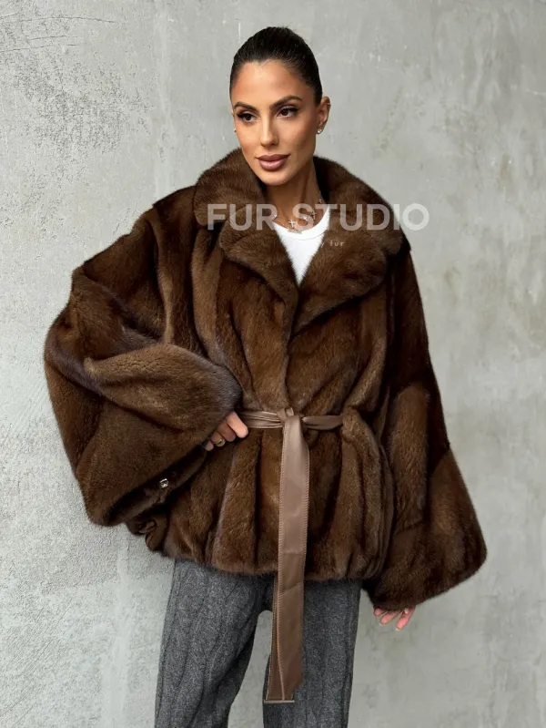 Мех данной шубы аукционная норка , цвет коричневый. Предлагается в размерах от 42 до 56 (oversize). Длина модели 70-75 см, что выгодно подчеркивает фигуру девушек. Эта модель идеально подойдет для девушек и женщин, предпочитающих роскошные натуральные меха.