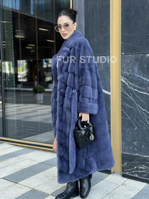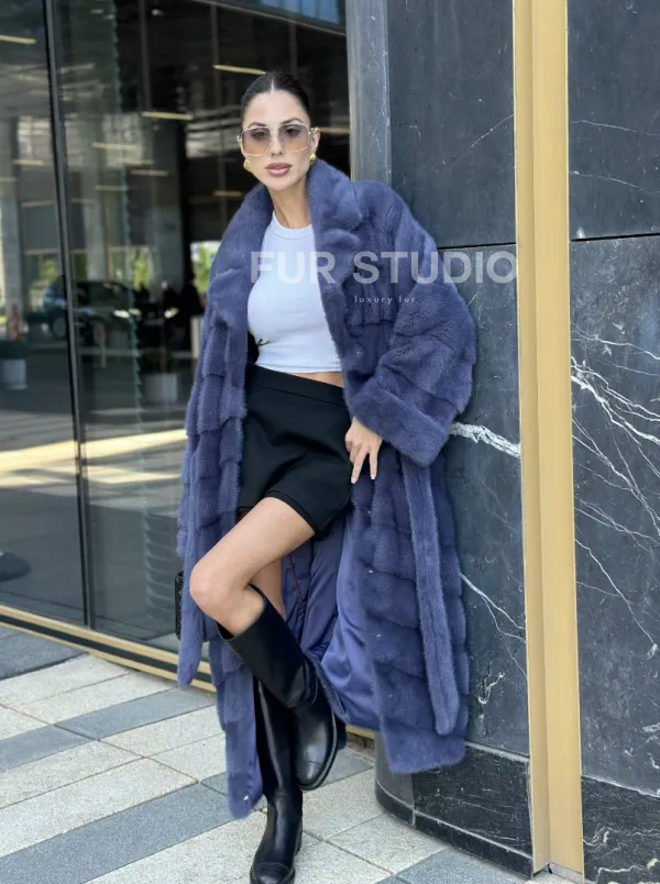 Норковая шуба с английским воротником - цвет джинс доступна для покупки в нашем шоуруме Furs Studio в . У нас так же есть доставка во все города России. Добавьте немного роскоши в свой гардероб с этой шубой, которая будет служить вам многие годы.