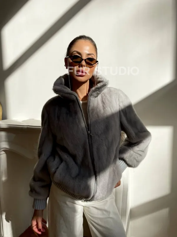 Оригинальный фермуар смотрится, как стильный аксессуар. Широкий воротник защитит шею от ветра. Изделие прекрасно сочетается со спортивным стилем, но может подойти и под экстравагантный вечерний наряд. Купить светлую норковую куртку – бомбер могут девушки, которые любят выглядеть необычно и современно в любое время года.