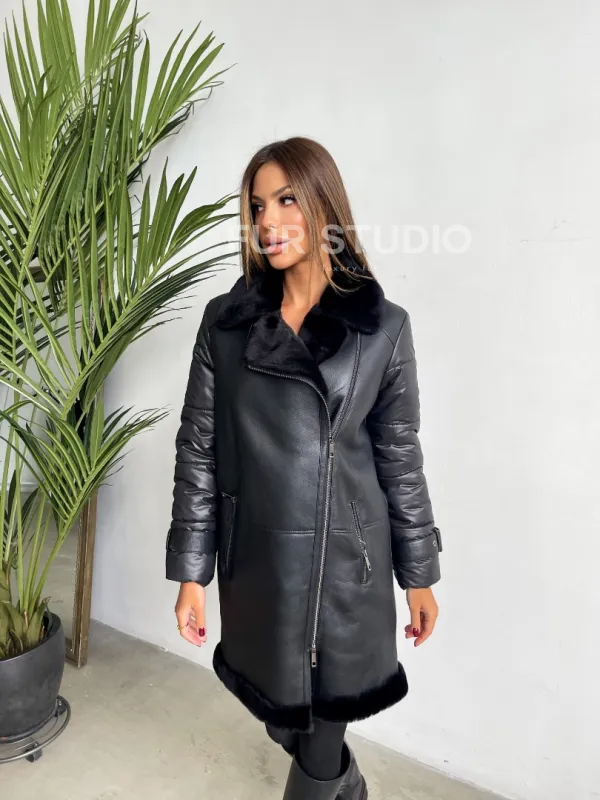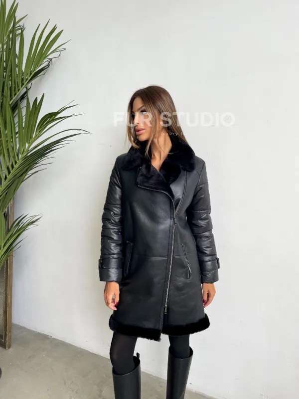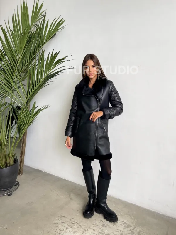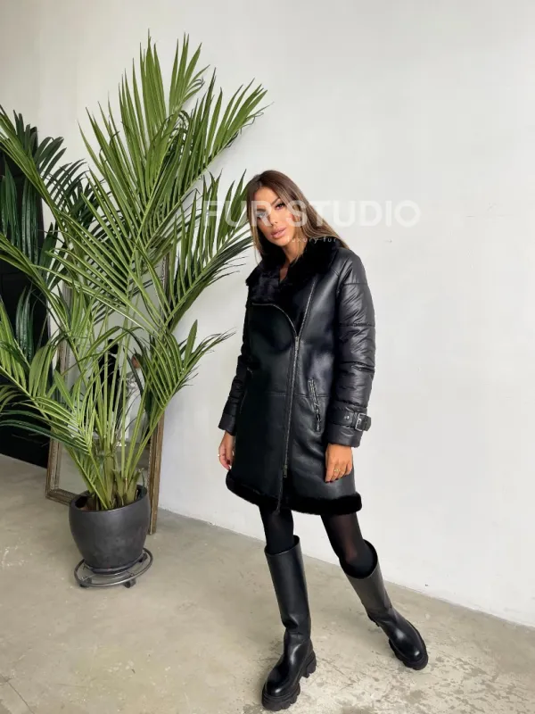 Удобные карманы позаботятся о тепле ручек в непогоду. Прямой крой скрывает недостатки фигуры и зрительно удлиняет силуэт. Роскошный воротник позаботится о тепле шеи и подчеркнет ее изящество. Ремни на рукавах делают образ экстравагантным. Купить авиатор дубленку из натуральной овчины в бежевом оттенке могут современные девушки, которые любят выглядеть стильно в любое время года.