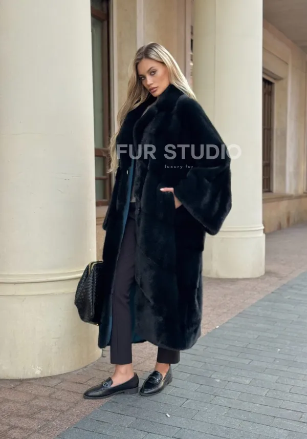 Зеленая норковая шуба 100508